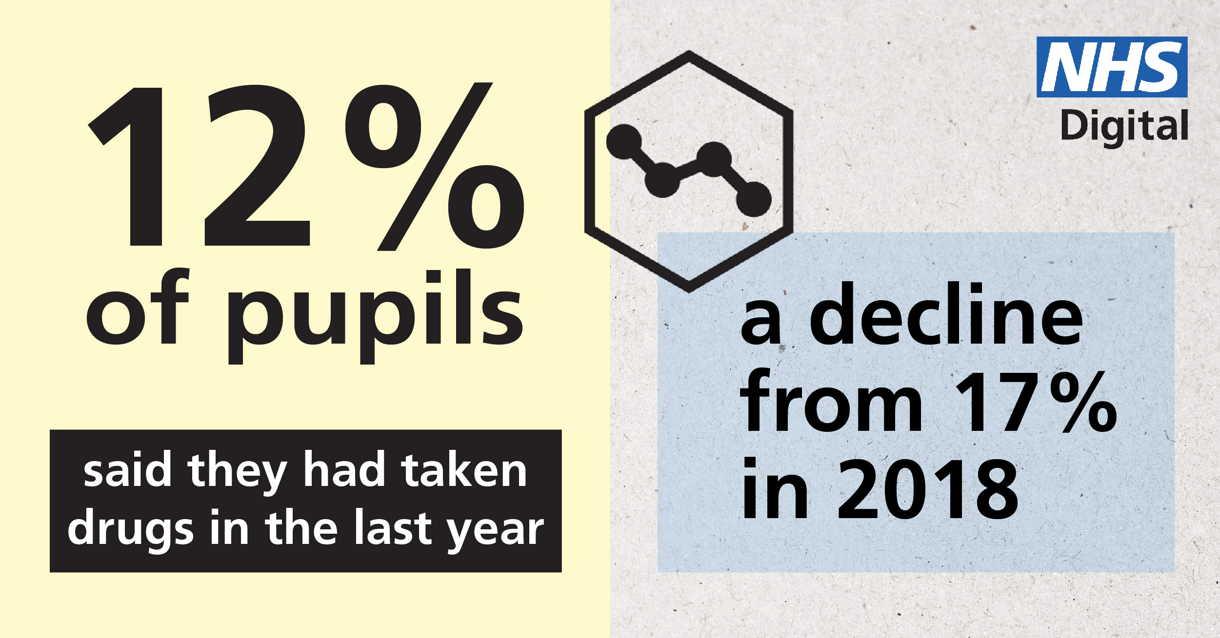 The number of young people taking drugs has also decreased, 18% of pupils reported having ever taken drugs, a decline from 24% in 2018. 12% of pupils said they had taken drugs in the last year, down from 17% in 2018.